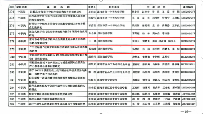 近日,漯河市教育局下发了《关于公布2024年度漯河市教育教学研究项目立项课题的通知》漯教研【2025】4号文件,经过专家严格论证评审,我院共有4项课题成功获得立项。