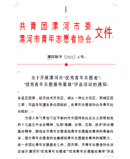 关于开展漯河市“优秀青年志愿者” “优秀青年志愿服务集体”评选活动的通知