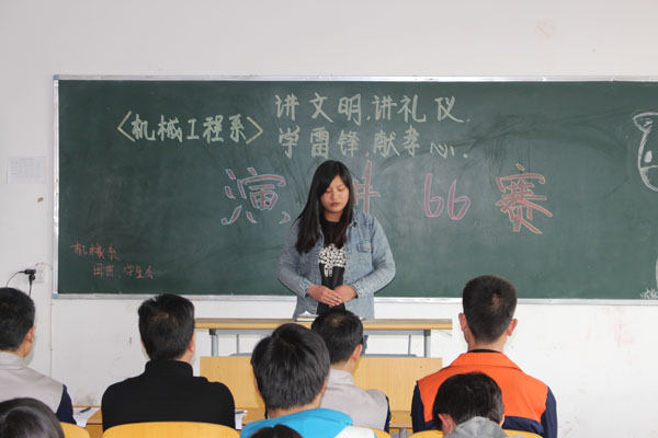 3月20日下午,机械工程系一年一度的“学雷锋树新风”学生演讲比赛在教学楼二楼多媒体教室拉开了帷幕。近百名学生观看了比赛。