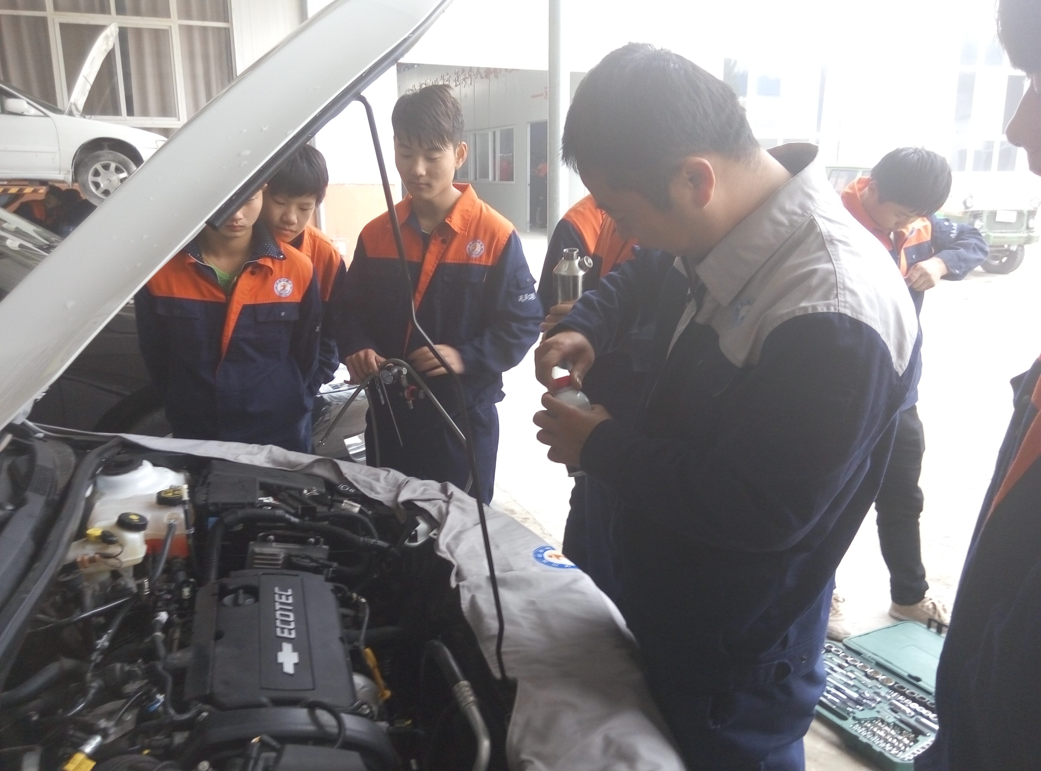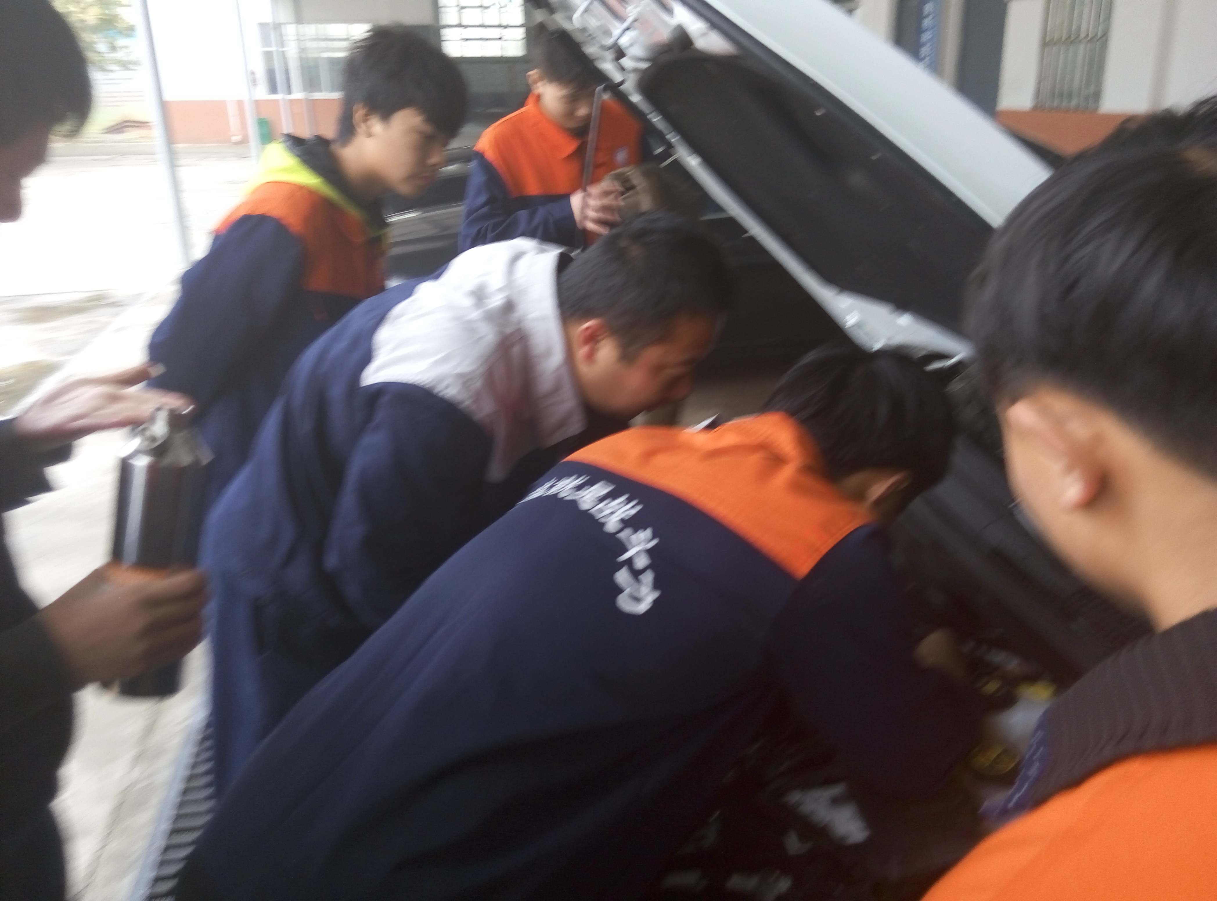 我系美容班学生进行车辆外观清洁美容工作